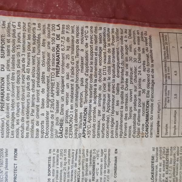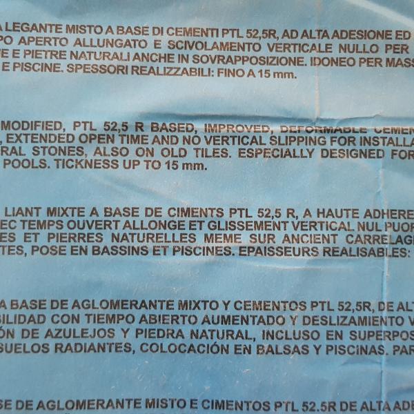 Colle à carrelage pour murs et sols. Sac de 25KG non ouvert. Valeur...